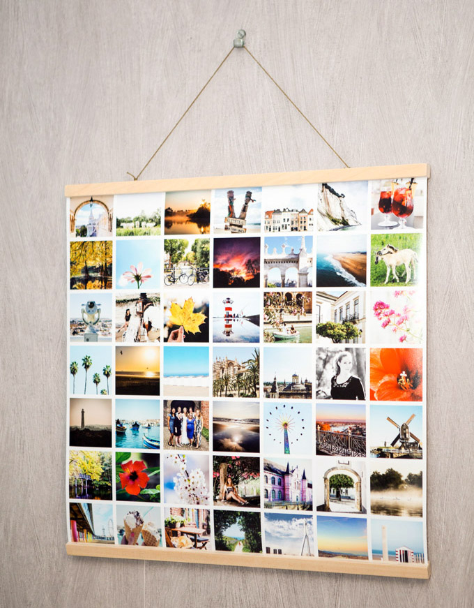 Heb je een leuke collage gemaakt? Dan kun je hem afdrukken op verschillende materialen. Van een poster (zoals ik heb gedaan) op stevig posterpapier van een hoogwaardige kwaliteit en met een subtiele satijnglans tot een print op canvas, plexiglas of aluminium. Ieder materiaal heeft een andere uitstraling dus zo zit er altijd iets tussen dat goed in jouw interieur past. De posters kun je natuurlijk inlijsten in een fotolijst, maar ik vond het leuk om ze met behulp van een ‘poster hanger’ op te hangen zodat het net een ander effect geeft dan in een lijst.