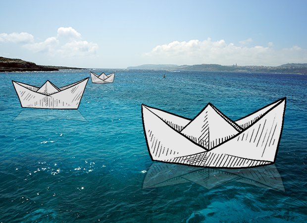 Stap 10: Klaar! Leuk toch, deze papieren bootjes die op het prachtige blauwe water van Malta drijven?